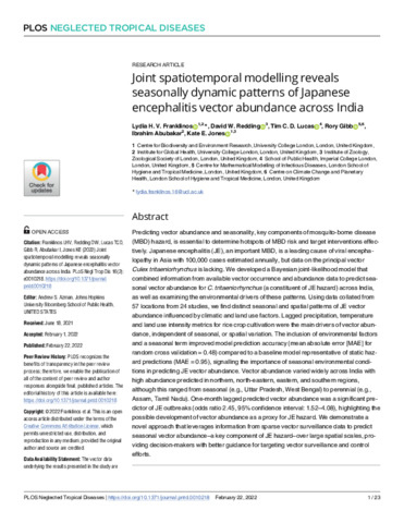 Title: | Joint spatiotemporal modelling reveals seasonally dynamic patterns of Japanese encephalitis vector abundance across India |