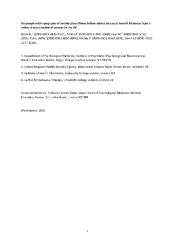 Do people with symptoms of an infectious illness follow advice to stay at home? Evidence from a series of cross-sectional surveys in the UK.