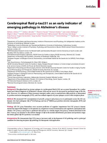 Title: | Cerebrospinal fluid p-tau231 as an early indicator of emerging pathology in Alzheimer's disease |