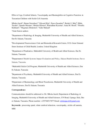 Title: | Effect of age, cerebral infarcts, vasculopathy and haemoglobin on cognitive function, in Tanzanian children with sickle cell anaemia |