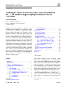 Title: | Emulating the impact of additional proton–proton interactions in the ATLAS simulation by presampling sets of inelastic Monte Carlo events |