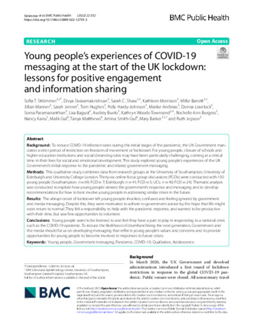 Title: | Young people's experiences of COVID-19 messaging at the start of the UK lockdown: lessons for positive engagement and information sharing |