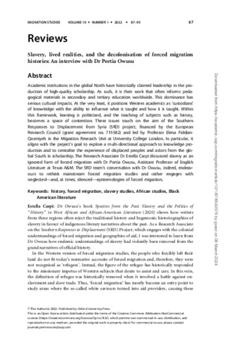 Title: | Slavery, lived realities, and the decolonisation of forced migration histories: An interview with Dr Portia Owusu |
