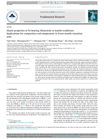 | Title: | Elastic properties of Fe-bearing Akimotoite at mantle conditions: Implications for composition and temperature in lower mantle transition zone |