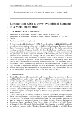 | Title: | Locomotion with a wavy cylindrical filament in a yield-stress fluid |