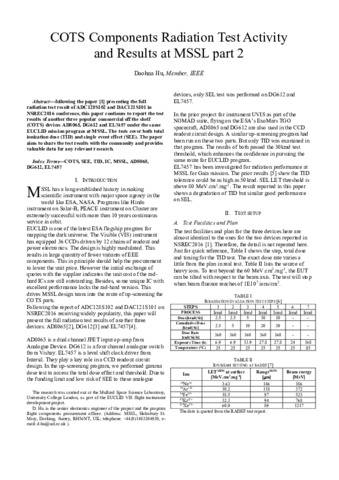 | Keywords: | COTS, SEE, TID, IC, MSSL, AD8065, DG612, EL7457 |