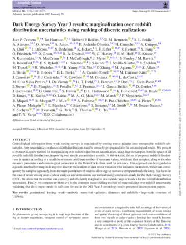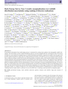 Title: | Dark Energy Survey Year 3 results: marginalization over redshift distribution uncertainties using ranking of discrete realizations |