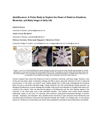 | Title: | QuintEssence: A Probe Study to Explore the Power of Smell on Emotions, Memories, and Body Image in Daily Life |