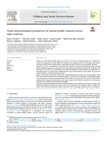 Title: | Youth and professional perspectives of mental health resources across eight countries |