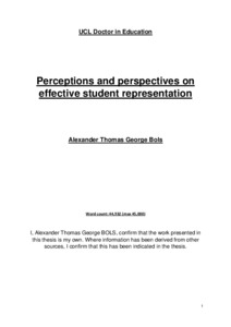 Students have been increasingly involved in university governance since the late 1960s. Since that time there have been competing paradigms about how students are seen, whether as consumers, service-users, stakeholders, democratic participants or as partners. Each of these paradigms has been used to justify increased involvement of students but with quite different expectations of how and why they are involving students. This study explores the factors of what makes effective student involvement in university governance. Student involvement in university governance has been widely researched but in most cases student involvement is considered in relation to one, or possibly two, of these paradigms but not all of them. This study identifies key gaps in the literature around the important role of university staff as gatekeepers; the extent to which committee structures consider how they engage students including how they address power differentials; as well as considering the perceptions of the effectiveness of the representatives themselves and the activities that they undertake. The study argues that the way in which students are seen in relation to key paradigms identified in the literature review impacts on how effective the processes are seen to be. The study is based primarily on perceptions of key stakeholders gathered through a national survey of university quality managers and students’ union course-rep co-ordinators. The study contributes to knowledge by conceptualising a theoretical framework within which to consider effective student involvement in university governance. The study develops a new theoretical framework on effective student involvement in university governance placing the key factors of effective student representatives, staff engagement and university committees within Ashraf and Kadir’s (2012) effectiveness model. This is then situated within a wider set of paradigms that emerge from the literature which highlighted the impact of how students are seen.