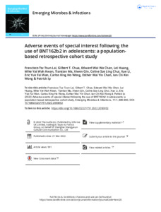 Title: | Adverse events of special interest following the use of BNT162b2 in adolescents: a population-based retrospective cohort study |