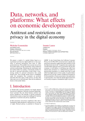Title: | Antitrust and restrictions on privacy in the digital economy |