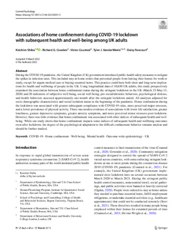 Title: | Associations of home confinement during COVID-19 lockdown with subsequent health and well-being among UK adults |