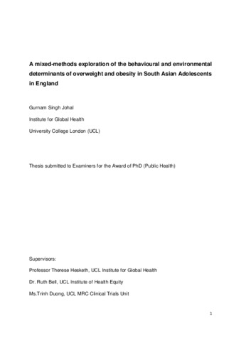 Title: | A mixed-methods exploration of the behavioural and environmental determinants of overweight and obesity in South Asian Adolescents in England |