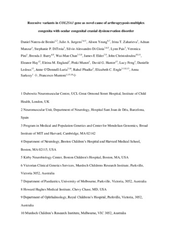 Title: | Recessive variants in COL25A1 gene as novel cause of arthrogryposis multiplex congenita with ocular congenital cranial dysinnervation disorder |