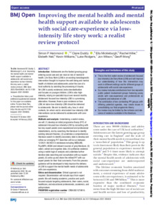 Improving the mental health and mental health support available to adolescents with social care-experience via low-intensity life story work: a realist review protocol.