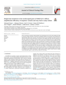 Title: | Single base mutations in the nucleocapsid gene of SARS-CoV-2 affects amplification efficiency of sequence variants and may lead to assay failure |