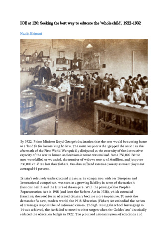 Title: | IOE at 120: Seeking the best way to educate the ‘whole child’, 1922-1932 |