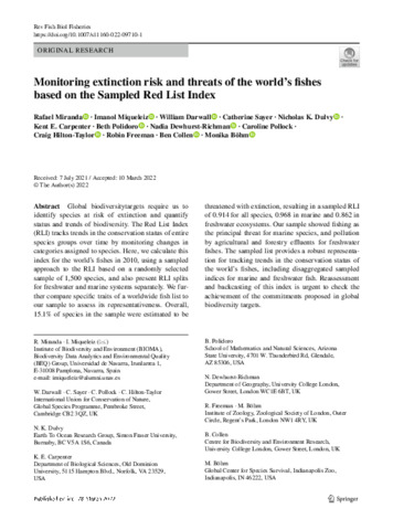 Monitoring extinction risk and threats of the world’s fishes based on the Sampled Red List Index.