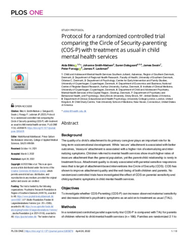 Title: | Protocol for a randomized controlled trial comparing the Circle of Security-parenting (COS-P) with treatment as usual in child mental health services |