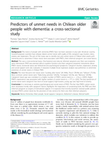 Title: | Predictors of unmet needs in Chilean older people with dementia: a cross-sectional study |