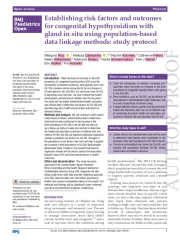 | Title: | Establishing risk factors and outcomes for congenital hypothyroidism with gland in situ using population-based data linkage methods: study protocol |