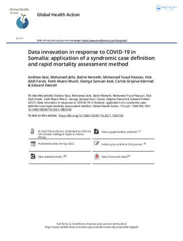 Data innovation in response to COVID 19 in Somalia application of a syndromic case definition and rapid mortality assessment method.pdf - Other Download (1MB) | Preview |