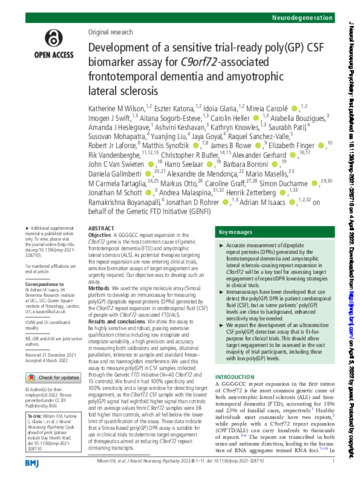 Development of a sensitive trial-ready poly(GP) CSF biomarker assay for C9orf72-associated frontotemporal dementia and amyotrophic lateral sclerosis.