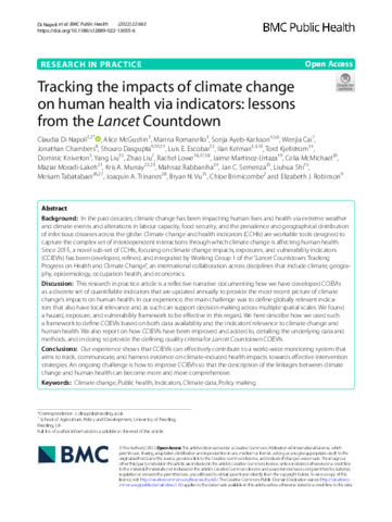 Title: | Tracking the impacts of climate change on human health via indicators: lessons from the Lancet Countdown |