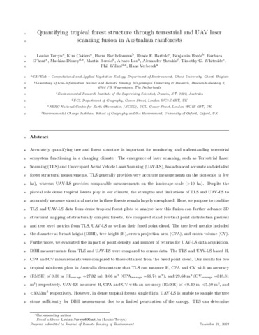 Title: | Quantifying tropical forest structure through terrestrial and UAV laser scanning fusion in Australian rainforests |