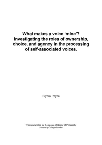Title: | What makes a voice 'mine'? Investigating the roles of ownership, choice, and agency in the processing of self-associated voices |
