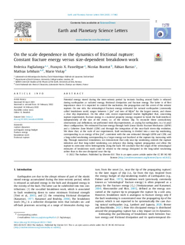 Title: | On the scale dependence in the dynamics of frictional rupture: Constant fracture energy versus size-dependent breakdown work |