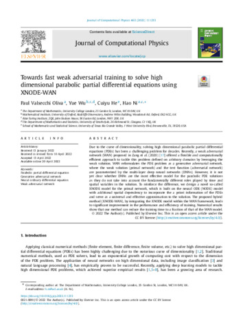 | Keywords: | Parabolic partial differential equation, Generative adversarial network, Neural ordinary differential equation, Weak adversarial network |