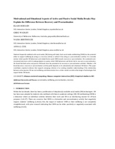 Title: | Motivational and Situational Aspects of Active and Passive Social Media Breaks May Explain the Difference Between Recovery and Procrastination |