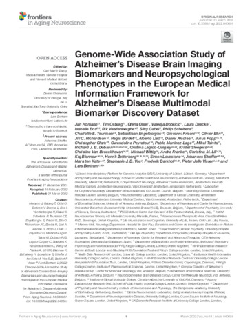Genome-Wide Association Study of Alzheimer's Disease Brain Imaging Biomarkers and Neuropsychological Phenotypes in the European Medical Information Framework for Alzheimer's Disease Multimodal Biomarker Discovery Dataset.