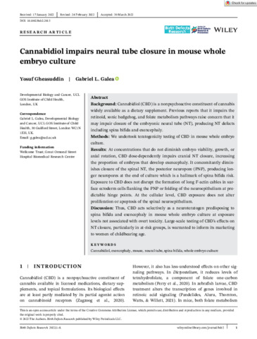 Title: | Cannabidiol impairs neural tube closure in mouse whole embryo culture |