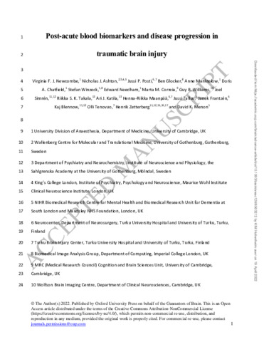 Title: | Post-acute blood biomarkers and disease progression in traumatic brain injury |