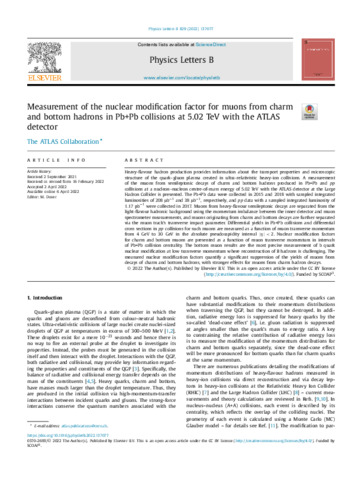 Title: | Measurement of the nuclear modification factor for muons from charm and bottom hadrons in Pb+Pb collisions at 5.02 TeV with the ATLAS detector |