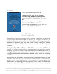 Review of Law and (Dis)Order in the Ancient Near East Proceedings of the 59th Rencontre Assyriologique Internationale Held at Ghent, Belgium, 15–19 July 2013.