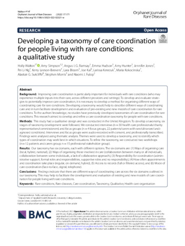 Title: | Developing a taxonomy of care coordination for people living with rare conditions: a qualitative study |