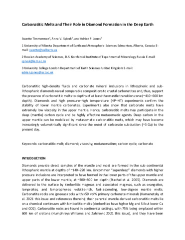 Title: | Carbonatitic Melts and Their Role in Diamond Formation in the Deep Earth |