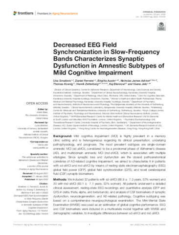 | Additional information: | Copyright © 2022 Smailovic, Ferreira, Ausén, Ashton, Koenig, Zetterberg, Blennow and Jelic. This is an open-access article distributed under the terms of the Creative Commons Attribution License (CC BY) (http://creativecommons.org/licenses/by/4.0/). The use, distribution or reproduction in other forums is permitted, provided the original author(s) and the copyright owner(s) are credited and that the original publication in this journal is cited, in accordance with accepted academic practice. No use, distribution or reproduction is permitted which does not comply with these terms. |