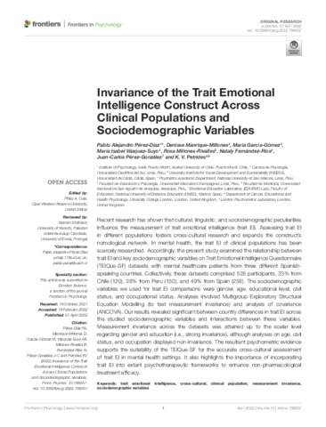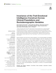 Invariance of the Trait Emotional Intelligence Construct Across Clinical Populations and Sociodemographic Variables.