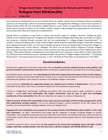 (Refugee Hosts Project – Recommendations for Research and Practice