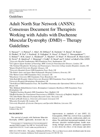 Title: | Adult North Star Network (ANSN): Consensus Document for Therapists Working with Adults with Duchenne Muscular Dystrophy (DMD) - Therapy Guidelines |