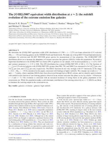 Title: | The [OIII]λ5007 equivalent width distribution at z ∼2: The redshift evolution of the extreme emission line galaxies |