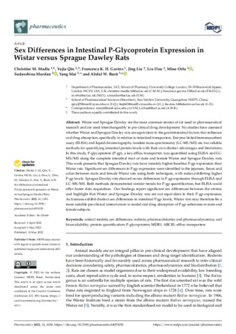 Title: | Sex Differences in Intestinal P-glycoprotein Expression in Wistar versus Sprague Dawley Rats |