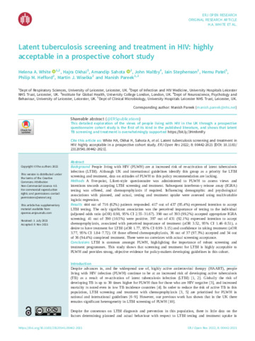Title: | Latent tuberculosis screening and treatment in HIV: highly acceptable in a prospective cohort study |