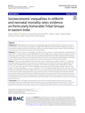 | Title: | Socioeconomic inequalities in stillbirth and neonatal mortality rates: evidence on Particularly Vulnerable Tribal Groups in eastern India |
