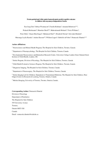 Title: | Fronto-Parietal and White Matter Haemodynamics Predict Cognitive Outcome in Children with Moyamoya Independent of Stroke |